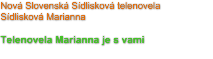 neželám si aby ste tu písali vulágrosti alebo príspeky ktoré nemajú nič spoločné s telenovelou Sídlisková Marianna
